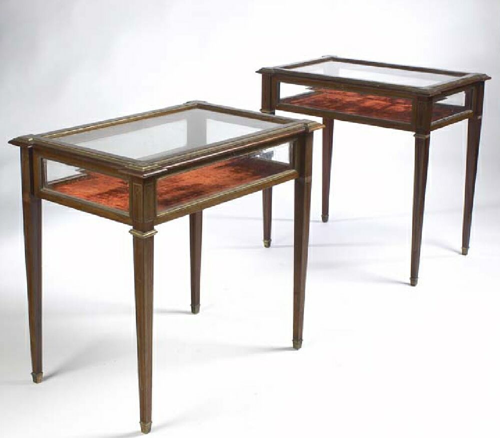 A pair of 19th century mahogany and brass strung vitrine tables Probably by Edwards & Roberts