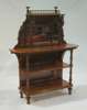 the galleried mirror back on female winged caryatid supports with urn finials, the bowed rectangular top above two shelves on fluted supports with leaf capitals, on turned feet