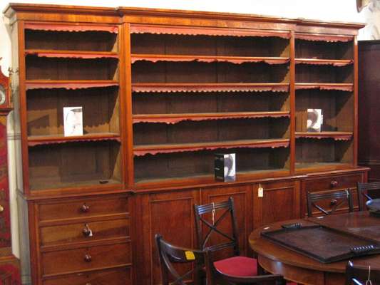 A large Victorian period walnut breakfront library bookcase