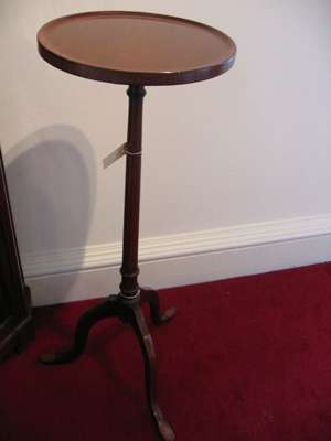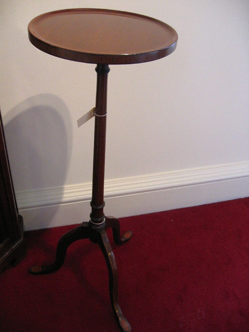 A pair of Edwardian period mahogany and inlaid torchere stands