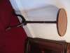 the circular dished tops raised on turned column supports, ending in tripod bases with pad feet (2)