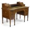 An Edwardian period rosewood, satinwood crossbanded and arabesque inlaid Carlton House style writing desk
