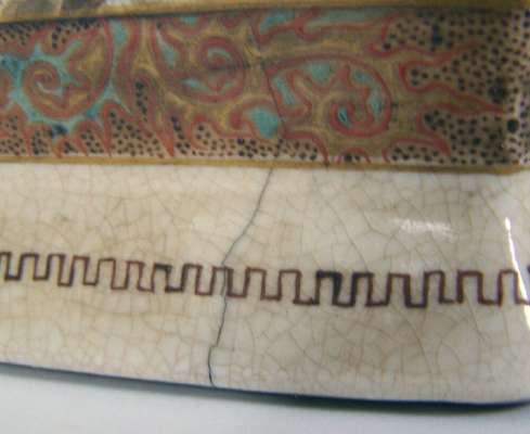 each of unusual diamond form, with flared neck and shouldered body, decorated with warriors and scholars (2)