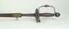 the grip cast with a spiral of double twisted wire, the knuckle guard of cut steel with a central globular ball between round section bars, the shell guards decorated with overall chequered pattern with a dot between each cross section, with slender triangular blade, the ovoid pommel cut with ovals, in original black leather scabbard with steel mounts (missing chape)