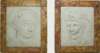 within mottled marble frames, each panel depicting a female portrait head, one inscribed 'Loterij 100.00' to the hat and both with inscriptions to the rear, one with the dates 1818, 1852 (2)