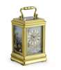 the dial and sides painted with a riverside landscape and young maidens, in leather carrying case