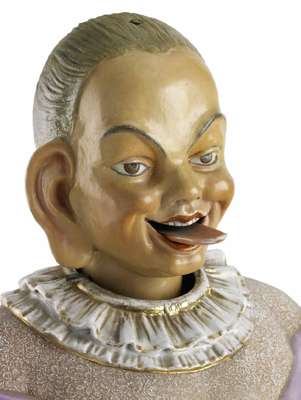 the head with articulated tongue and long ears, the body seated cross legged and wearing a flower painted robe, with articulated hands, blue painted anchor mark