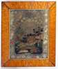 signed 'Work'd by Isabella Paine in the 7th year of her age 1825', depicting a Georgian house with a nearby chapel within a pastoral setting with grazing sheep and cows, the outer border and upper cartouche composed of trailing carnations and summer flowers, within a bird's eye maple frame and moulded giltwood slip