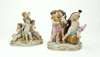 emblematic of Summer and Winter, each with four cherubs, on a rococo scroll base, blue painted crossed sword mark (2)