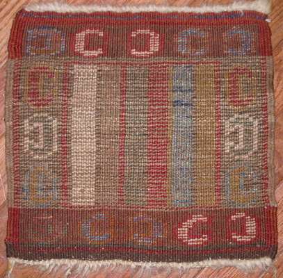 late 19th/early 20th century, possibly Konya, the field with six vertical polychrome stripes, within brown crescent moon border