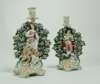 each with a candle sconce in the form of a flowerhead, one a shepherd with a dog at his feet, the other a shepherdess with a lamb at her feet, each with bocage and raised on a rococo scroll base (2)