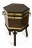 of hexagonal form, the caddy moulded top with brass carrying handles enclosing later metal liner, with drain hole to base, on a fluted stand and three reeded splay legs ending in brass castors
