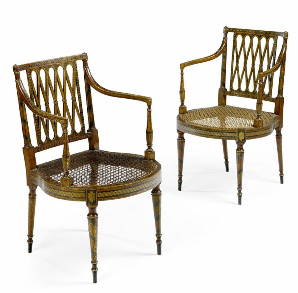 A pair of George III period painted armchairs In the Sheraton taste