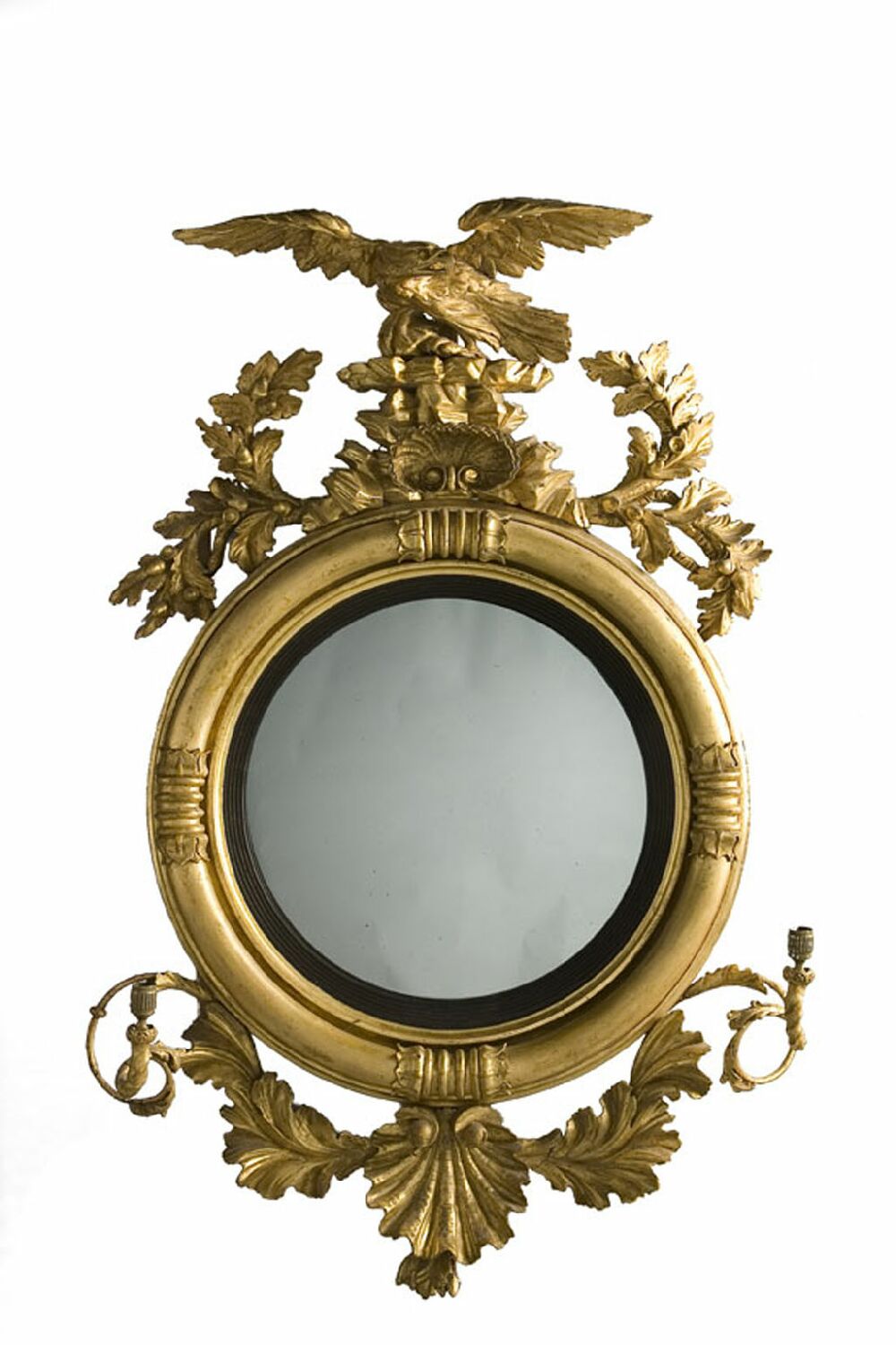 A Regency period giltwood convex girandole mirror
