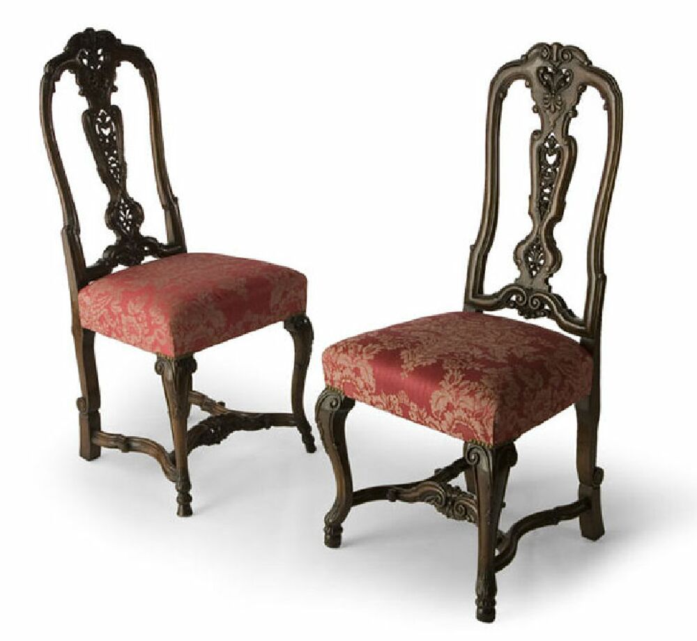A set of eight walnut framed high back dining chairs In the late 17th century Dutch manner
