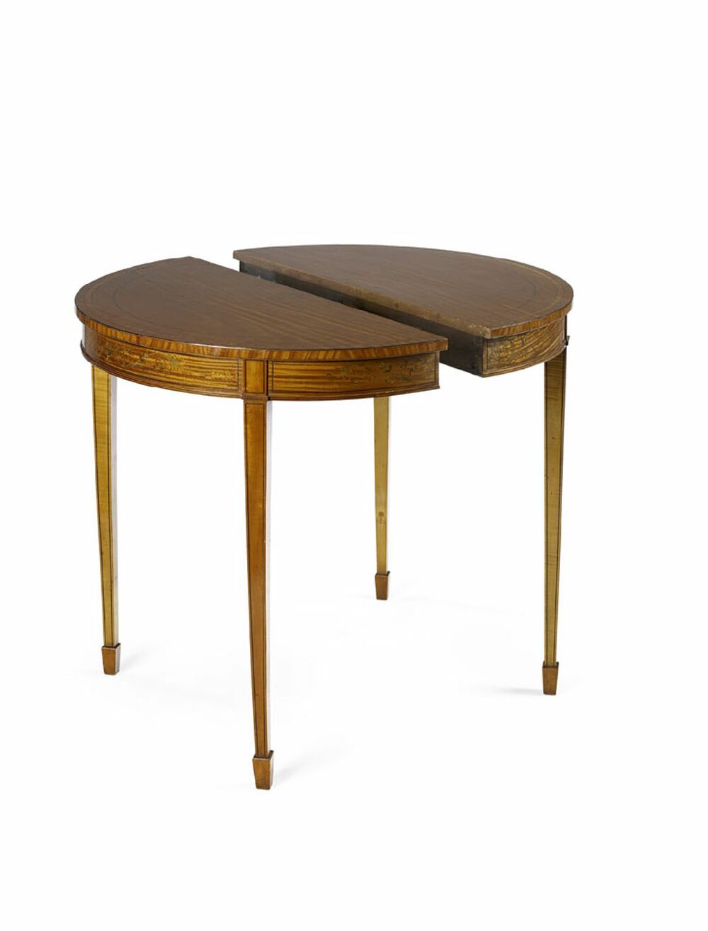 A pair of Edwardian satinwood demi lune pier tables