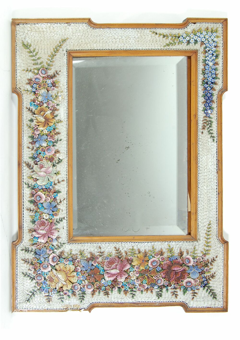 A late 19th/early 20th century Italian fruitwood and mosaic mirror