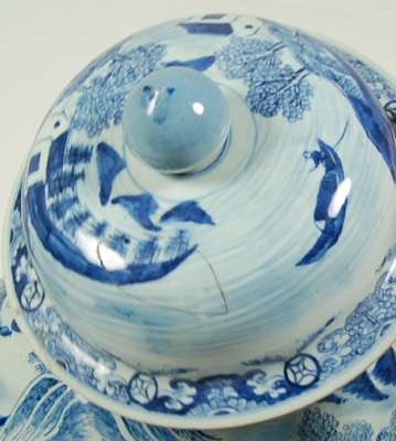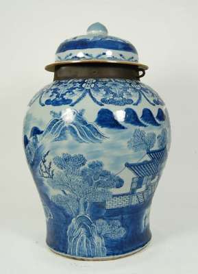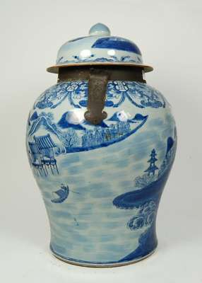 A large 19th century Chinese blue painted storage jar