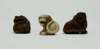 all modelled as grotesque animals; one ivory with mother of pearl eyes, 3cm long; another of carved wood, 4.5cm long; and a carved wood tiger, 4cm long, all signed (3)