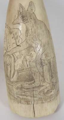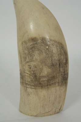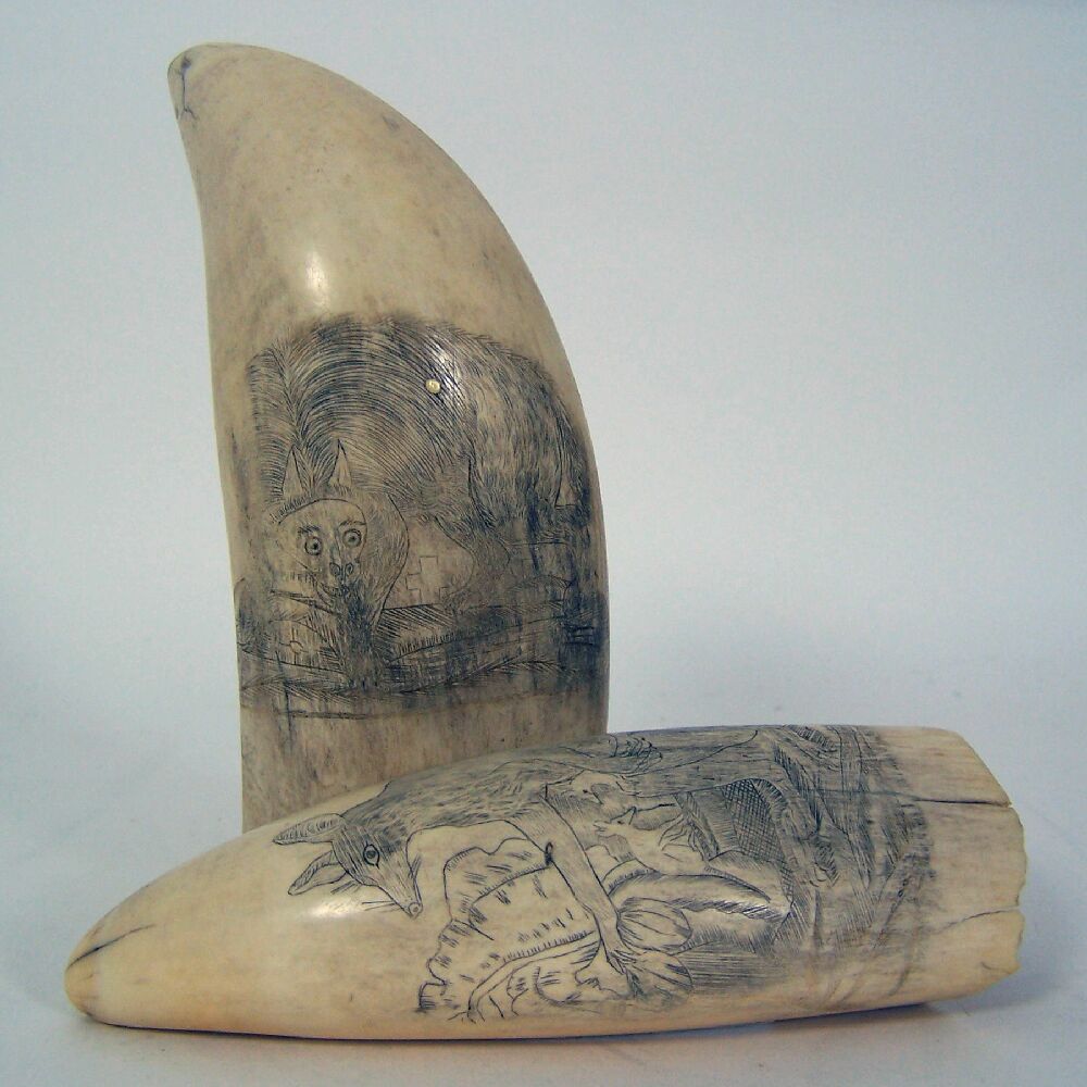 Australian interest Two 19th century whale tooth scrimshaws depicting antipodean animals