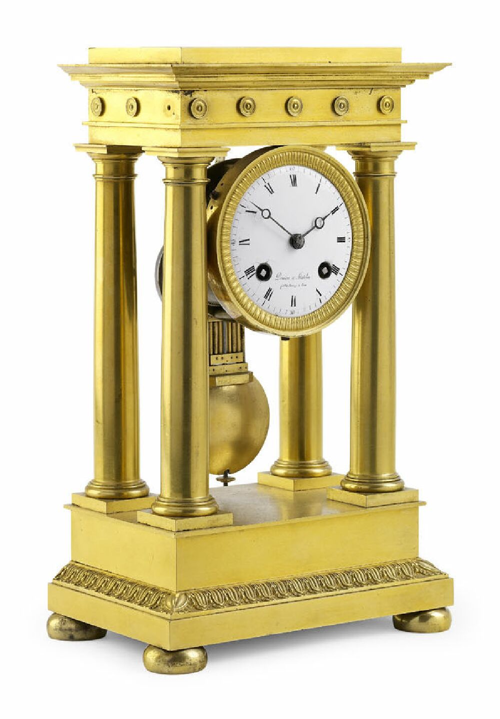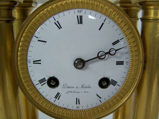 A French 19th century gilt brass four pillar mantel clock By Deniere & Matelin, Paris