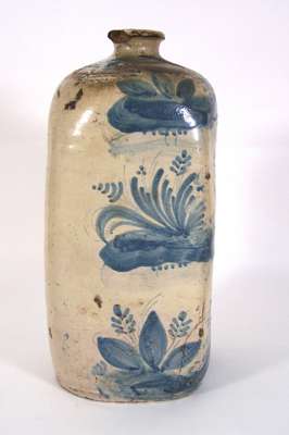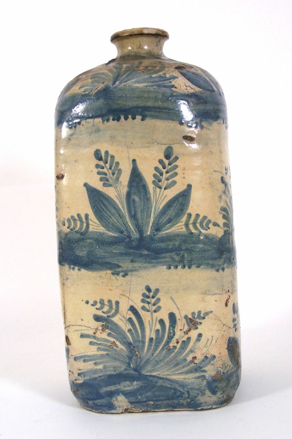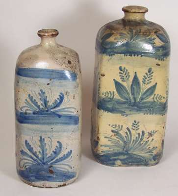 Two early 18th century blue painted maiolica bottles Probably Italian from Liguria