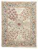 modern, the cream field with central rosette medallion issuing floral diagonals, within cream floral and serrated leaf border between similar bands