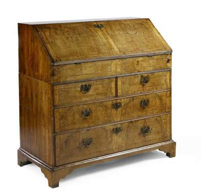 A George I walnut and featherbanded bureau