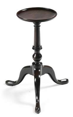 the circular dished top on a ring and baluster turned column ending in triple cabriole legs with pointed pad feet