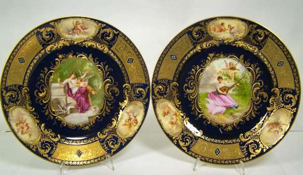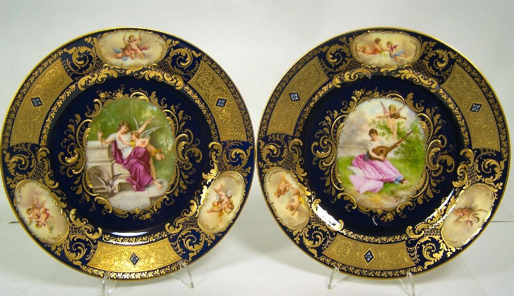 A pair of late 19th century Vienna porcelain cabinet plates Painted by Moheu