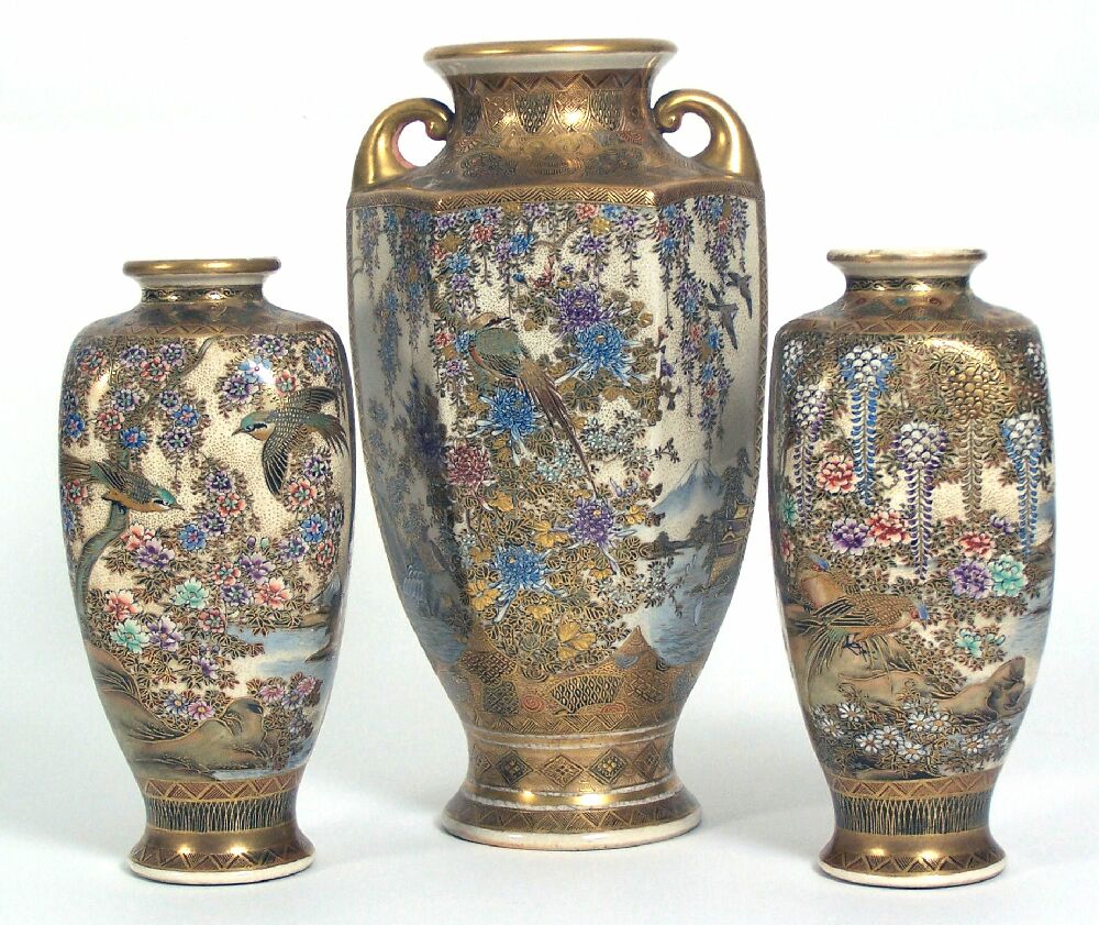 An associated garniture of three Japanese satsuma vases, Meiji period