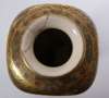 comprising: a shouldered hexagonal twin handled vase, 24.5cm high; and a pair of smaller square form vases, 18.5cm high, each with geometric borders and profusely decorated with birds and flowering branches with a lake and mountains in the background (3)