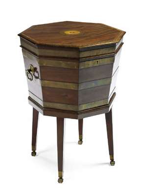 A 19th century mahogany, brass bound and satinwood crossbanded octagonal wine cooler