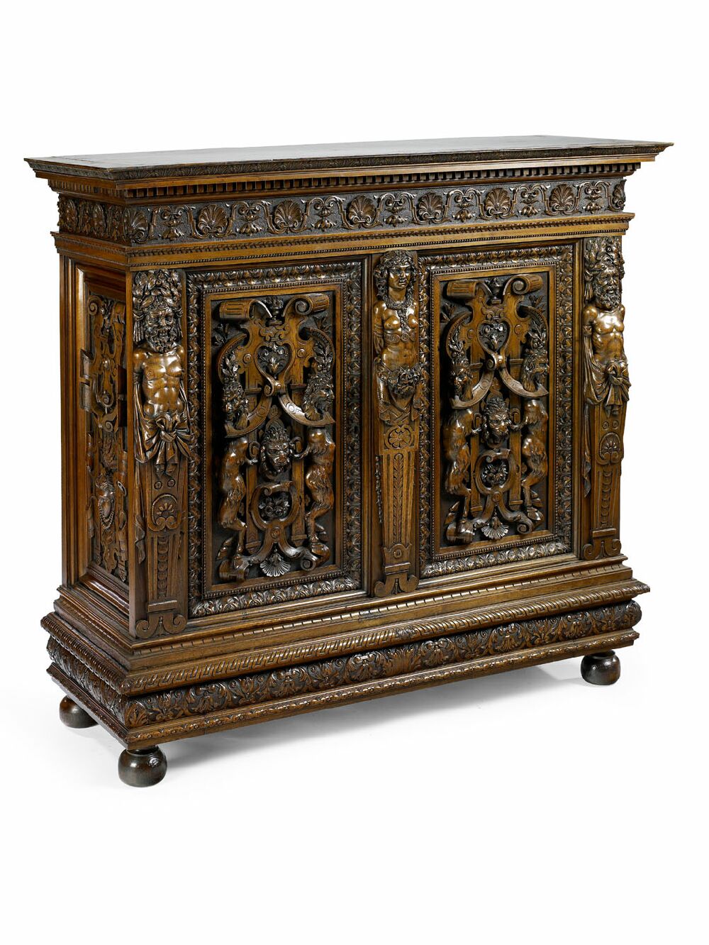 A late 19th century carved walnut French Renaissance Revival cupboard