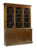 inlaid with stringing, the moulded cornice above three astragal glazed doors enclosing adjustable shelves, the lower section with three panel cupboard doors, raised on a moulded plinth base