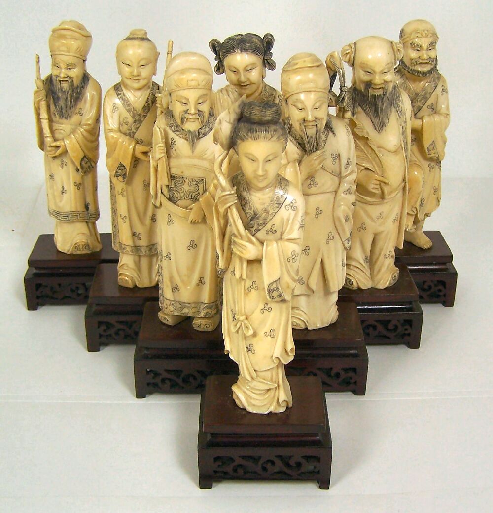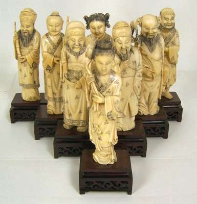 A set of eight late 19th/early 20th century Chinese ivory immortals