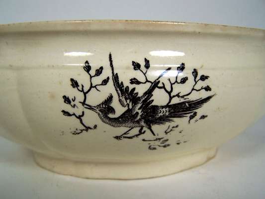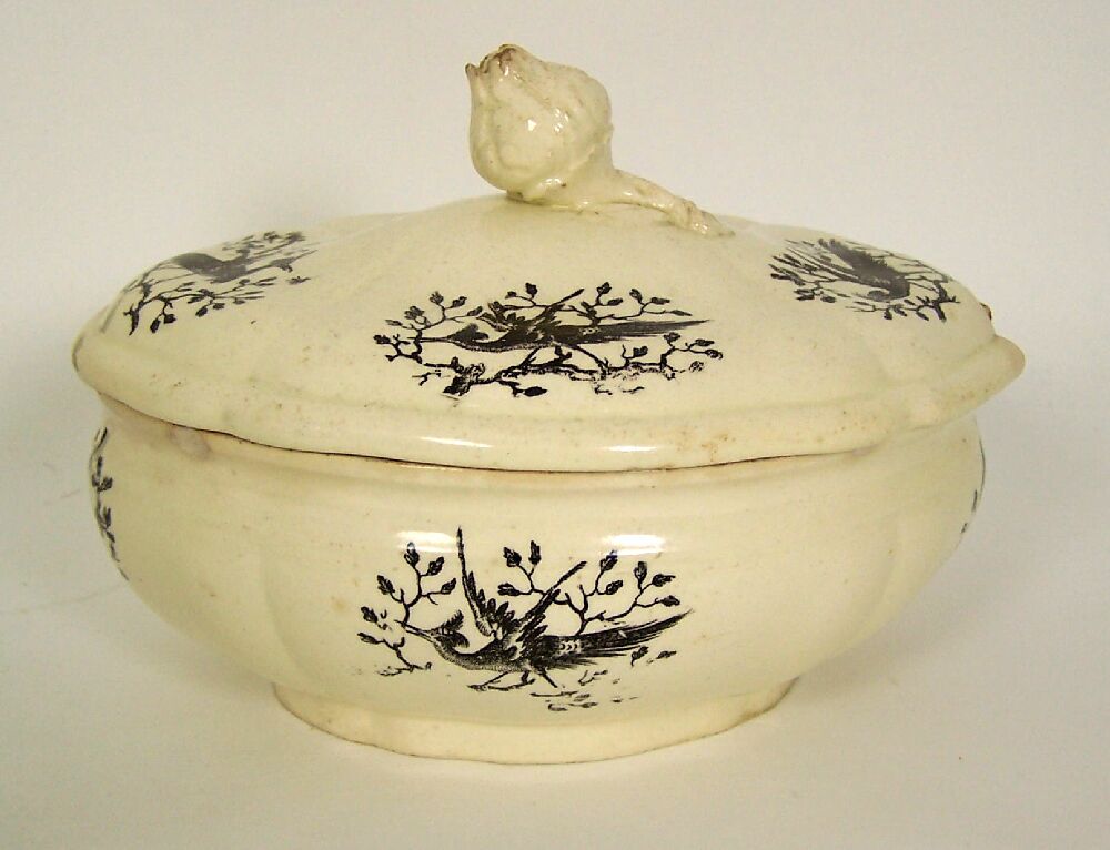 A Wedgwood creamware sauce tureen and cover, circa 1770 Transfer printed by Sadler and Green