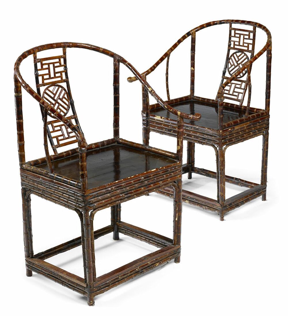 A pair of Chinese lacquered bamboo armchairs In the Ming style