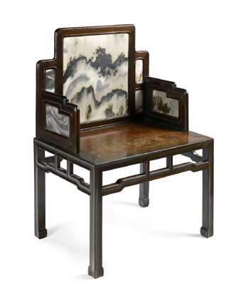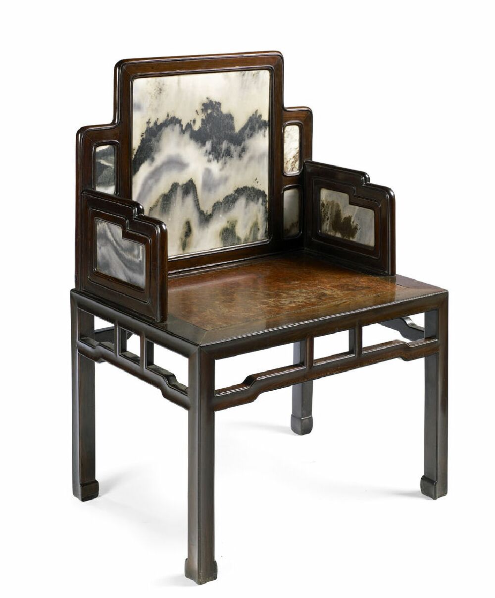 A late 19th century Chinese hardwood and marble chair