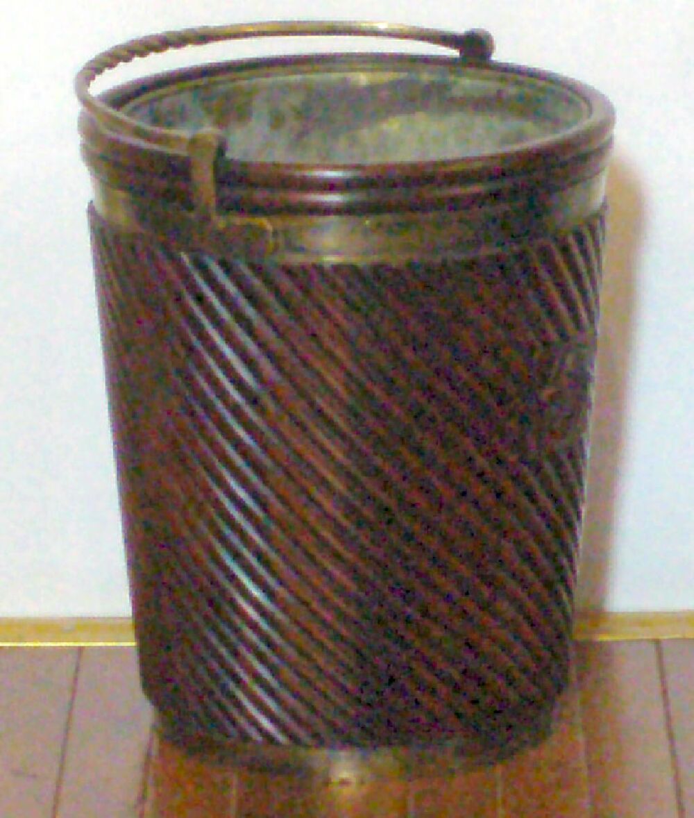 with removable liners and brass loop carrying handles, with brass bands and spiral reeded sides with applied shell mouldings