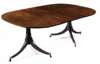 with a single leaf, rounded ends, the top with stringing, slightly tapering ringed columns, the tripod legs with brass toes and castors