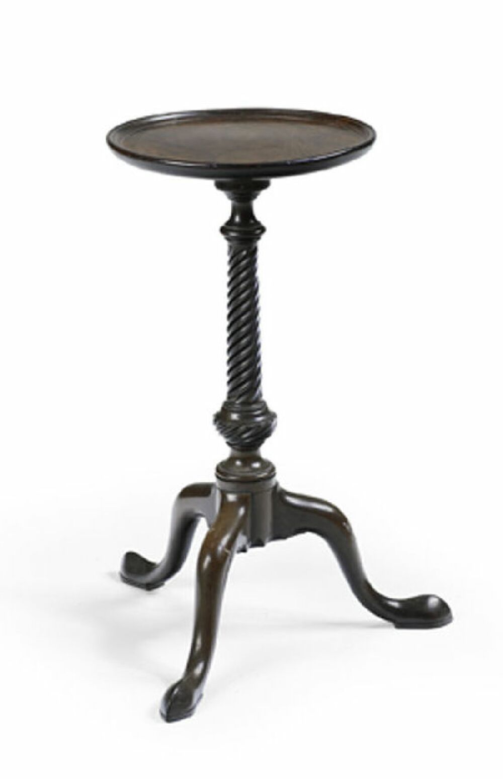 with a dished circular top above a spirally fluted baluster column, on cabriole tripod base ending in pointed pad feet