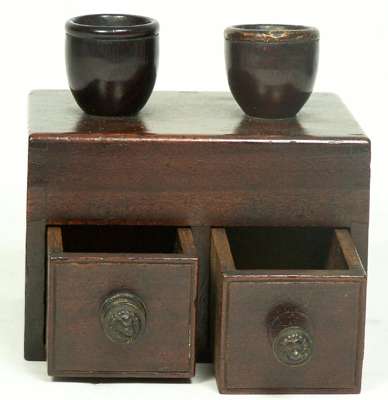 the egg shaped voting compartments above two small drawers, within rectangular box