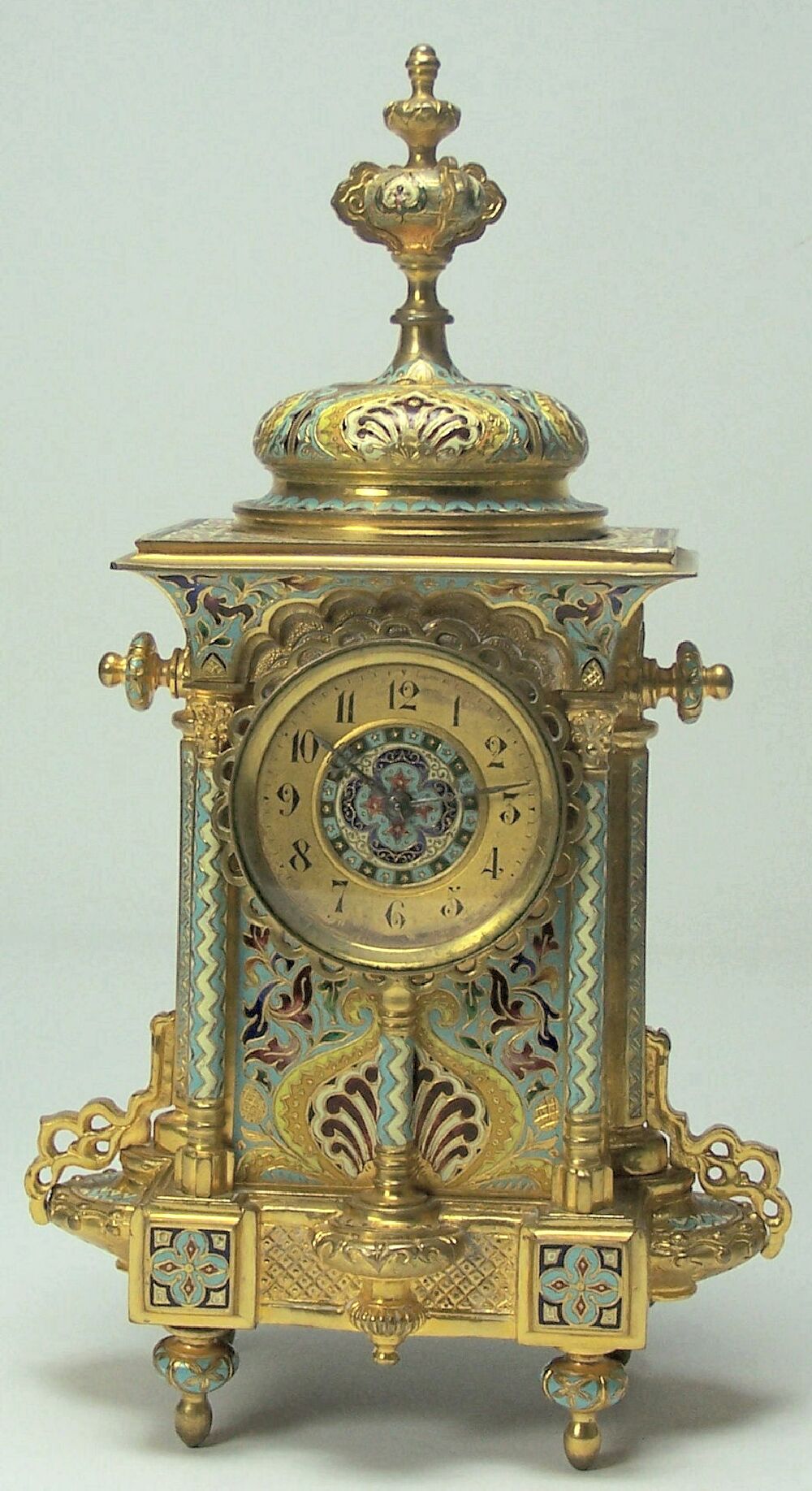A late 19th century French gilt bronze and champleve enamel mantel clock in the Persian style ‡