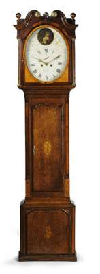 An unusual George III oak mahogany banded longcase clock