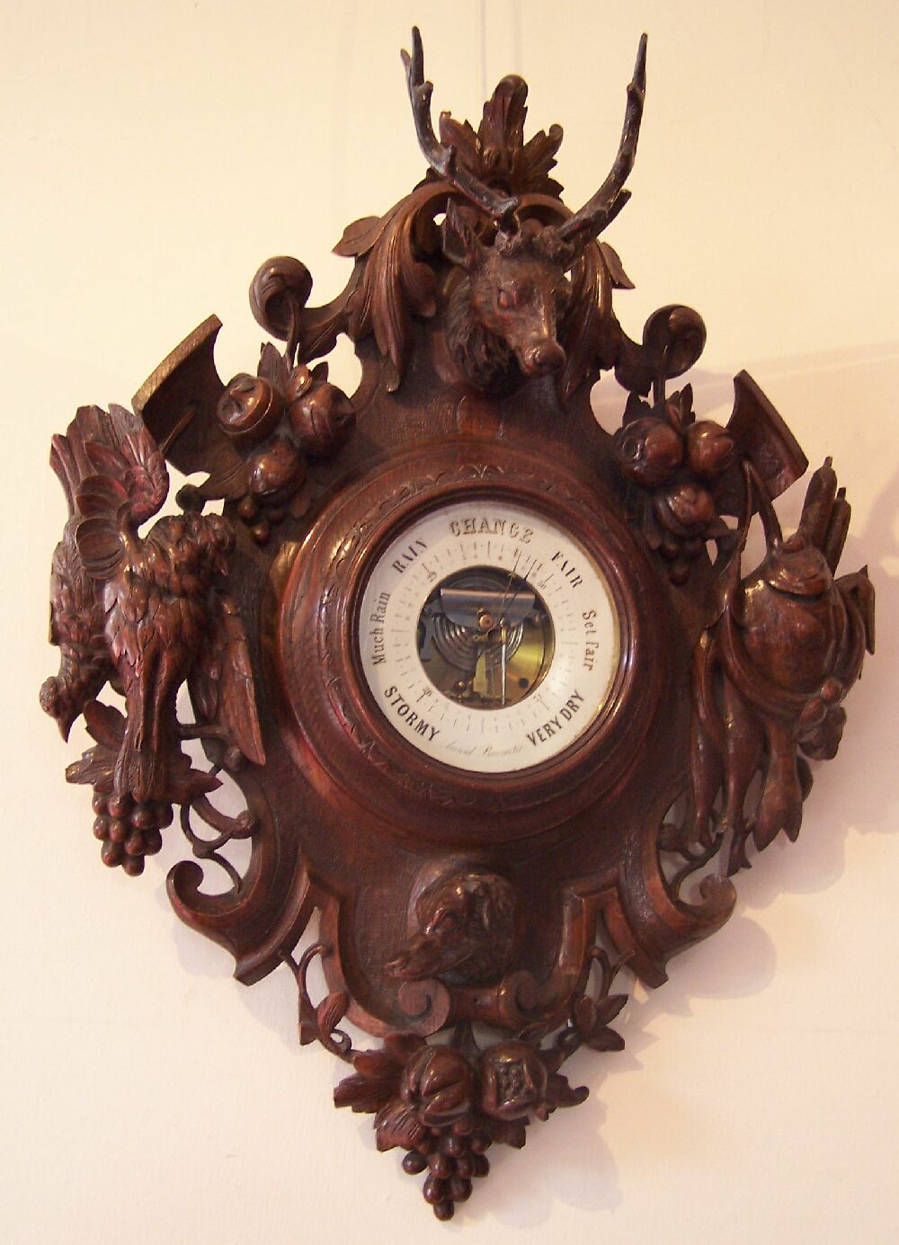 the ornate architectural shell and anthemion pediment above twin fluted columns over a large white enamel dial surrounded by acanthus decoration