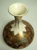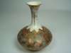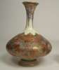 of onion form with elongated flared neck, decorated with trailing wisteria to the neck, the body with a profusion of flowers in gilt and colours, above simpler panels of stylised leaves and flowers, signed