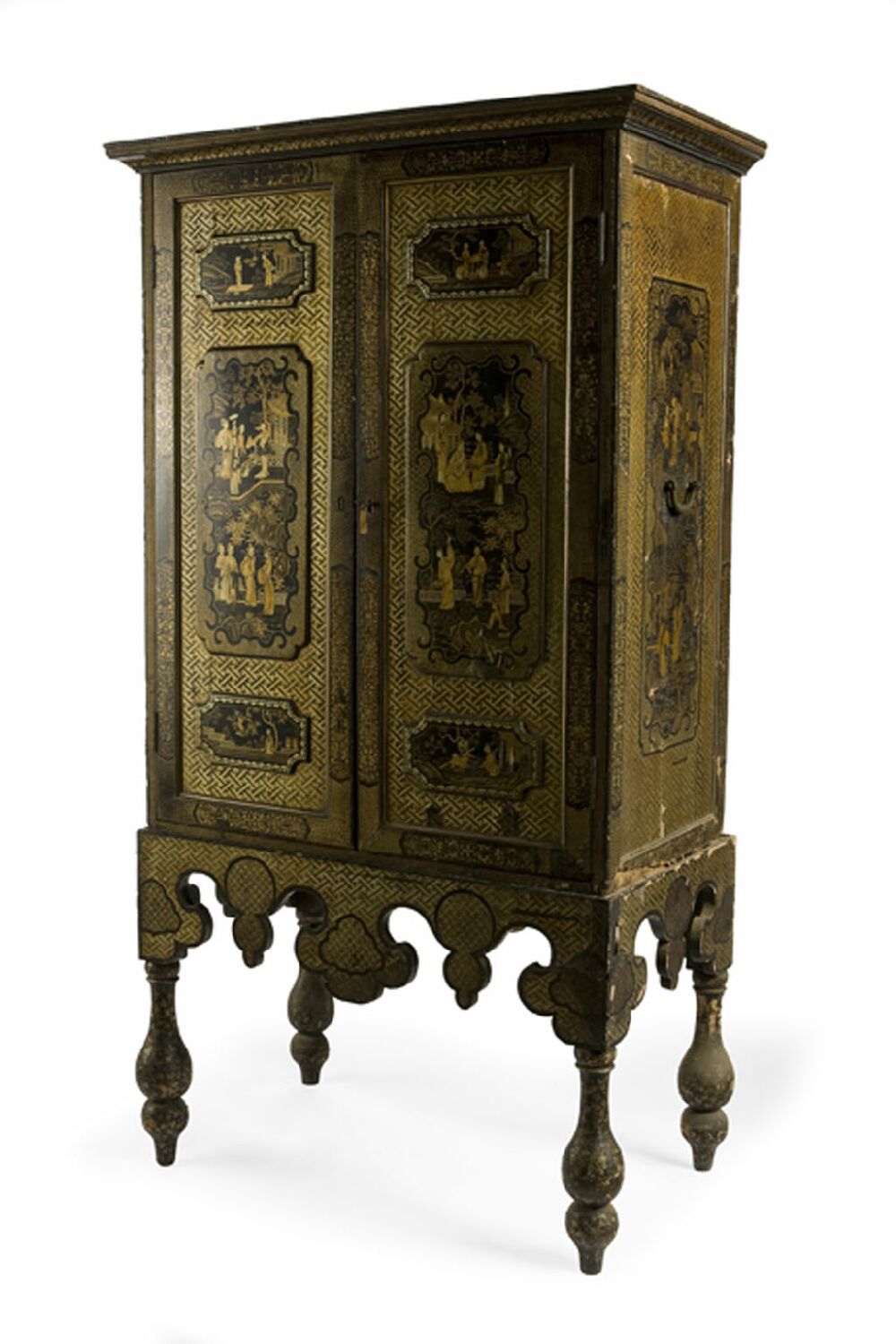 An early 19th century Chinese export gilt and polychrome lacquer chest on stand