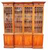 adapted from a larger bookase, the moulded dentil cut cornice above a neo-classical frieze with ribbon tied harebell festoons, the four glazed doors with interlaced ogee astragals, enclosing adjustable shelves above moulded panel cupboard doors enclosing adjustable shelves, raised on a plinth base