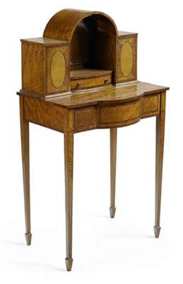 A Sheraton Revival satinwood and tulipwood crossbanded bonheur du jour